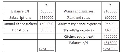 Receipts and payments Account of Abalure Youth Club for the year ended 31st December 2018