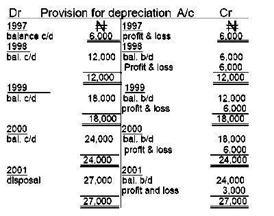 A fixed asset was bought for #60,000 on 1st January, 1997. Depreciation was provided at 10% on cost. It was sold for #16,000 on 30th June, 2001.