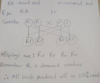 Owing to the dominance of roundness, the crossing of the two seeds regularly would see all the offsprings having mixed genes but will be round.
