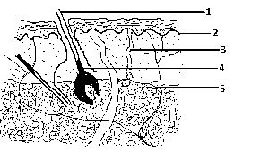 Melanin and keratin are produced in the part labelled