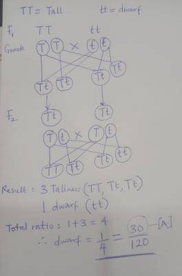The F1 of a cross between a tall and a dwarf plant was tall. The F1 was advanced to F2. How many of 120F2 plants will be dwarf?