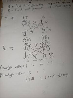 Self-pollination is the transfer of pollen grains from the anther to the stigma of the same flower. If the F1 generation self-pollinates, the genotypic ratio of the offspring will depend on the genotype of the F1 generation. The genotypic ratio is 1:2:1