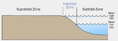 Intertidal zone, also known as the littoral zone, organisms in this zone must adapt to alternating wet and dry conditions as tides come in and recede. They must also be able to withstand the damage caused by waves.
