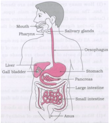The diagram represents the digestive system in man, and the labelled parts are shown as seen in the diagram above: