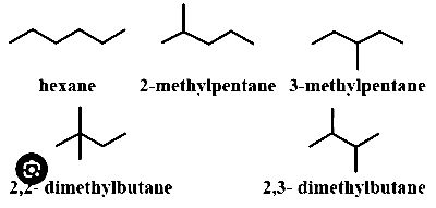 The five structural isomers of C\(_6\)H\(_{14}\), also known as hexane, are:
