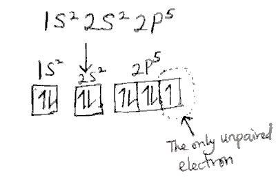 If the electron configuration of an element is 1S\(^2\) 2S\(^2\)2P\(^5\), how many unpaired electron are there?
