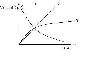 In the diagram above, which of the curves represents the evolution of oxygen with time in the equation 2KClO3(s) → 2KCl(s) + 3O2(g)?