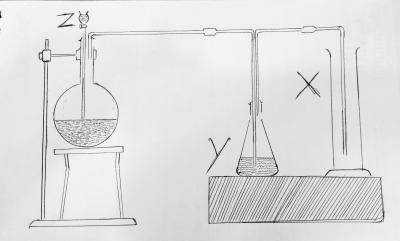 In the laboratory preparation of trioxonitrate (V) acid the nitrogen(iv) oxide formed as a by-product is removed by