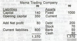 The difference between total current assets and total current liabilities of a business is known as