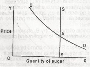 In the above diagram supply and demand conditions of sugar in a Nigerian market are given. An indirect tax of 10 kobo per kg is imposed it will be paid