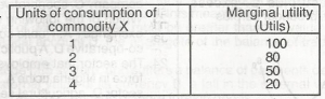 From the table above, the total utility for the individual who consumes 3 units of commodity X is