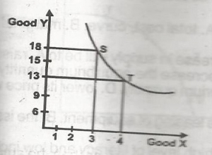 In the diagram above, the marginal rate of substitution of X for Y, for a movement from S to T is