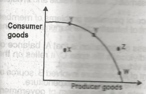 If the country is currently producing at point Y, it can increase production of producer goods by moving to the point