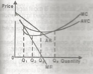 The diagram above represents the short-run position of a monopolist. The profit-maximizing output is