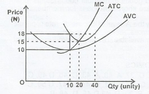 From the Diagram above, the optimal point of production is