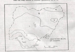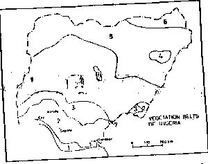 The largest concentration of domesticated livestock in Nigeria is found in the vegetation zone marked