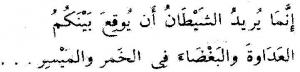 ‘Inna mā yurīdu ash-shaytānu an yūqi ‘abaynakumul adāwata wal-baghdā fil khamr wal-maysir (Q. 5:91)