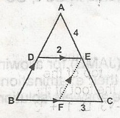 In the figure, DE//BC: DB//FE: DE = 2cm, FC = 3cm, AE = 4cm. Determine the length of EC.