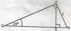In the diagram, angle QPR = 90o, angle PSR = 90o and PR = 5 units. Find the length of QS.