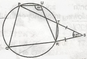 In the fiqure where PQRTU is a circle, ISTI = IRSI and angle TSR = 52o. Find the angle marked m