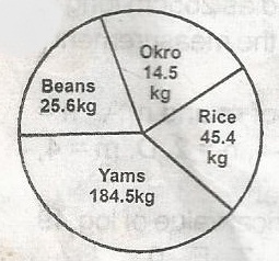 The farm yield of four crops on a piece of land in Ondo are represented on the pie chart. what is the angle of the sector occupies by Okro in the chart?