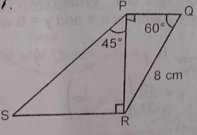 In a figure, PQR = 60o, PRS = 90o, RPS = 45o, QR = 8cm. Determine PS