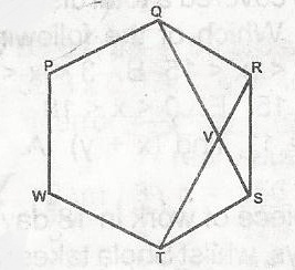 In the figure, PQRSTW is a regular hexagon. QS intersects RT at V. Calculate TVS