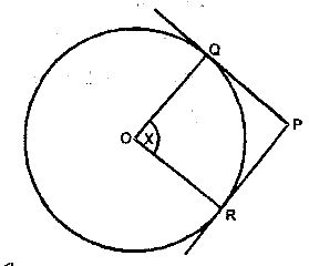 PQ and PR are tangents from P to a circle centre O as shown in the figure. If QRP = 34o, find the angle marked x