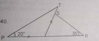 In the figure, \(\bigtriangleup\)PQT is isosceles. PQ = QT, SRQ = 35o, TPQ = 20o and PQR is a straight line.Calculate TSR