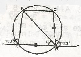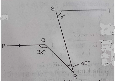In the figure, PQ is a parallel to ST and QRS = 40o. Find the value of x