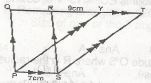 In the figure, PS = 7cm and RY = 9cm. IF the area of parallelogram PQRS is 56cm2. Find the area of trapezium PQTS