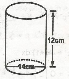 In the diagram, the base diameter is 14cm while the height is 12cm. Calculate the total surface area if the cylinder has both a base and a top.[\(\pi \frac{22}{7}\)]