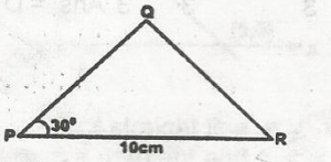 In the diagram, find PQ if the area of triangle PQR is 35cm\(^2\)