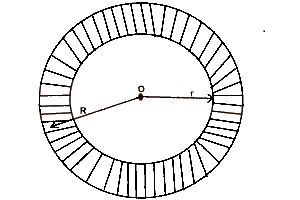 In the diagram above are two concentric circles of radii r and R respectively with center O. If r = 2/3R, express the area of the shaded portion in terms of π and R