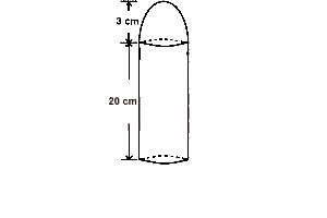 In the diagram above, a cylinder is summounted by a hemisphere bowl. Calculate the volume of the solid.