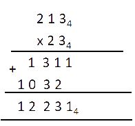 Simplify 213\(_4\) x 23\(_4\)