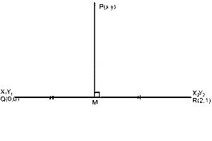 Locus of a point P(x,y) which is equidistant from Q(0,0) and R(2,1) is the perpendicular bisector of the straight line joining Q and R