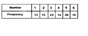 An unbiased die is rolled 100 times and the outcome is tabulated above.