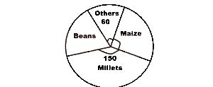 The pie chart above shows the distribution of the crops harvested from a farmland in a year. If 3000 tonnes of millet is harvested, what amount of beans is harvested