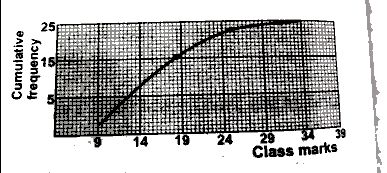 The graph above shows the cumulative frequency curve of the distribution of marks in a class test. What percentage of the students scored more than 20 marks?