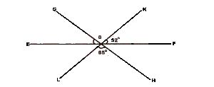 Three straight lines EF, GH and LK interest at O as shown above. If ∠KOF = 52o and ∠LOH = 85o, calculate the size of ∠EOG.