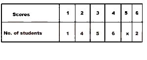 The table above shows that the scores of a group of students in a test. If the average score is 3.5, find the value of x
