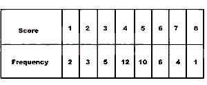 The table above shows the scores of a group of students in a physics test. If the mode is m and the number of students who scored 4 or more is n, what is (n, m)?