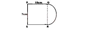 In the diagram above, QR is the diameter of the semicircle QR. Find the area of the figure to the nearest whole number. [\(\pi = \frac{22}{7}\)]