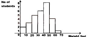 The histogram above represents the weights of students who traveled out to their school for an examination. How many people made the trip?
