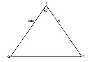 If the area of ΔPQR above is 12\(\sqrt{3}\) cm\(^2\), find the value of q?