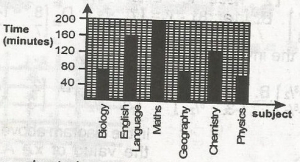 The bar chart above shows the allotment of time(in minutes) per week for selected subjects in a certain school. What is the total time allocated to the six subjects per week?