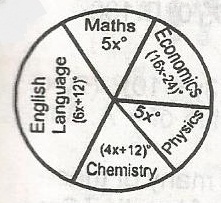 The pie chart above shows the statistical distribution of 80 students in five subjects in an examination. Calculate how many student offer Mathematics.