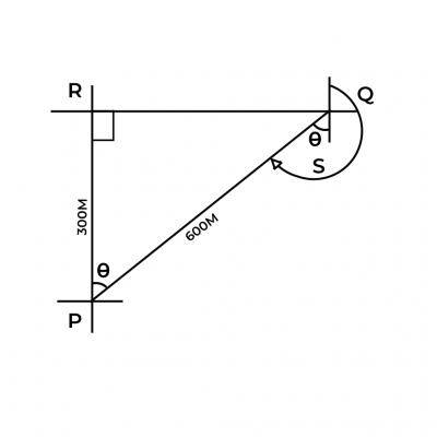 From a point R, 300m north of P, a man walks eastwards to a place; Q which is 600m from P. Find the bearing of P from Q correct to the nearest degree