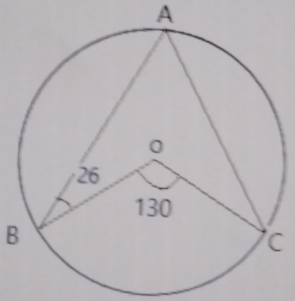 In the diagram above, O is the centre of the circle ABC, < ABO = 26° and < BOC = 130°. Calculate < AOC.
